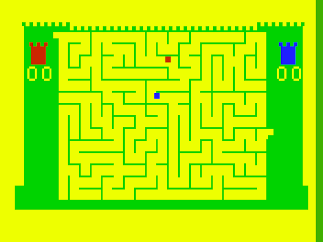 A close second for my favorite Bally Professional Arcade game this year would be Amazing Maze. I’m guessing this is based off of the 1976 arcade game “Amazing Maze” because the gameplay is identical. You and your opponent – who can be computer controlled – each control a dot, and begin at opposite entrances to the maze. The goal is to make it to the entrance your opponent started from before he can make it to the entrance you started from. You have a grace period at the start to try and figure out where to go with your eyes, and then you’re off. I particularly like the Bally Professional Arcade version of this game because it comes with such amusing and adorable graphics and sound effects. The limitations of the console means it takes a little bit to generate the maze each round before you can start, and they’ve compensated for this really cleverly with fun sound effects and animation that lets you watch the computer think up the maze! I really like how they put this together! 👍🏻