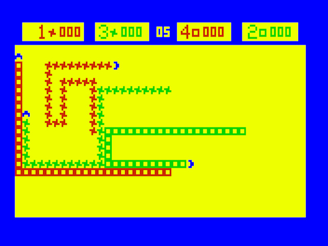 On that note, I think my favorite game for the Bally Professional Arcade would be Checkmate, which is one of two games (along with “Gunfight”) built into the console itself, and you can always choose it as an option no matter what cartridge you have inserted. You’d think it was a chess game, but you’d be wrong. In fact it plays very similarly to the “Surround” for the Atari VCS, which I had highlighted in the 1977 article, where you let out trails and have to force your opponent to hit a trail before they can do the same to you. This time though, there are four different players on the screen, and you can have all your opponents controlled by the computer. The sound effects of this game are weirdly sad and creepy, which I find kind of amusing for some reason. 🤷🏻‍♀️