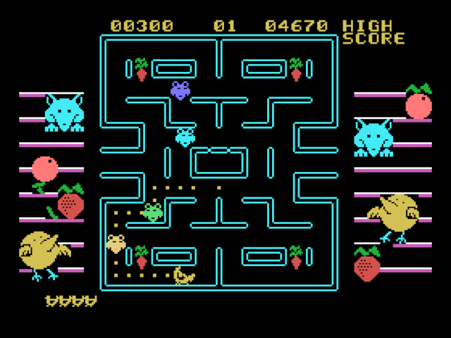 Having played something so creative and innovative, but too far ahead of its time makes me appreciate simpler titles that are a bit too predictable but still manage to offer something clever. Crazy Chicky for the CreatiVision is such a game. For the most part, it’s just a straight clone of Pac-Man, with exactly the kind of gameplay you’d expect. But instead of eating little pellets, you are a chicken that lays eggs, so you are filling the maze of dots rather than emptying it. You do this while running from “funky foxes”, and the different theme has an interesting charm to it! VTech made a variant of Crazy Chicky on a separate cartridge, called Crazy Pucker, that doesn’t have these changes and is essentially just a straight Pac-Man ripoff for CreatiVision users who just wanted a way to scratch their Pac-Man itch. While I’ve always hated how artistic mediums are flooded with works completely lacking in originality, I think it’s important to understand the target audience’s position in this case. Most people couldn’t afford to buy multiple consoles to cover every game they were interested in, and licensing limitations meant console companies often couldn’t offer official ports of the games people who owned their consoles wanted to play, even if those console owners would be otherwise happy to buy them. So that means even very unoriginal games could fill a useful role for customers. So I guess they weren’t a complete waste of time and resources like yet another Spider-Man movie is today. 😣