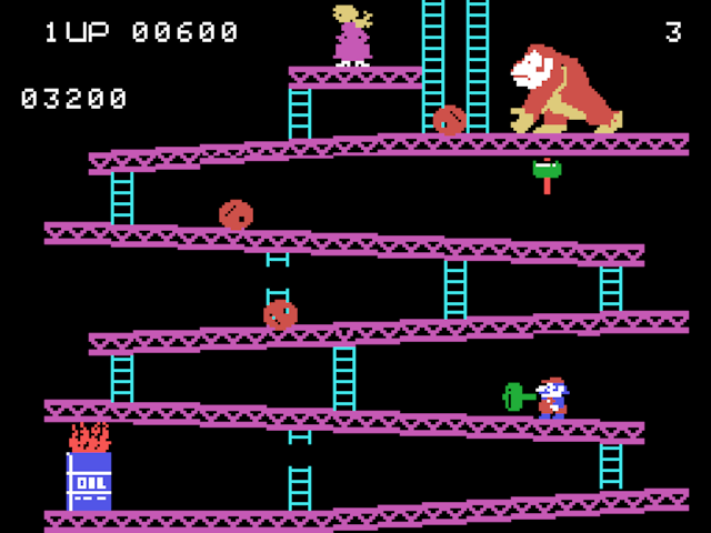 The most famous arcade port of the year though has to be Coleco’s Donkey Kong , which brings the popular arcade game into people’s homes with a shocking level of faithfulness to the original. As you can see from the screenshot, the graphics are only barely worse than they were on the arcade version, and it really showed off the power of the ColecoVision, though they also made a much uglier and simpler port for the Atari 2600. I recommend playing both ports as a way to compare the graphical capabilities of the two systems. The commercial success of the ColecoVision is largely attributed to Coleco’s port of Donkey Kong.