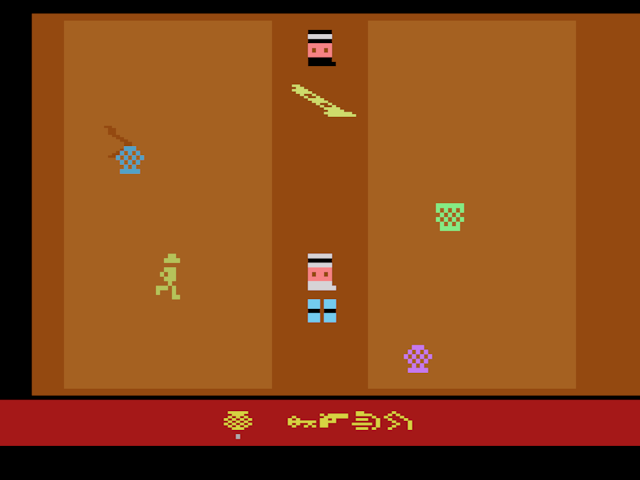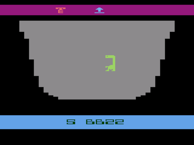 But while the terrible Pac-Man port had at least been based on a critically acclaimed game that people were attached to, E.T. wasn’t originally a game and so it didn’t have that advantage. The gameplay was fundamentally slow-paced, clunky, confusing, tedious, frustrating, and just plain awful. It involved just wandering around trying to find phone parts buried in numerous pits that were difficult to get out of, and enemies that would drag you around the map to make you lose track of all the pits you’d checked. The severe limitation of the Atari controller’s single button was dealt with by having it perform a completely different function based on the exact spot on the map you were standing, which meant you’d be desperately fishing around for the right arbitrary place to stand to be able to do something. Since high scores were based on how quickly you could finish, and since how quickly you could finish was based heavily on random chance, it left people with nothing to do once the short game had been completed.