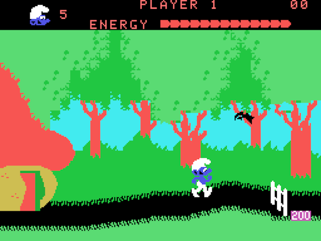Whatever may be said about colossal complexity, elegant simplicity, ground-breaking innovation, facepalming stupidity, or shocking, hilarious tastlessness, when it comes purely to simple eye candy, Smurf: Rescue in Gargamel’s Castle for the ColecoVision is the clear and indisputable winner of 1982 console gaming. The game’s visuals are colorful, cheerful, and beautiful, looking more like a NES game than something you’d expect to find in this era outside of arcades.