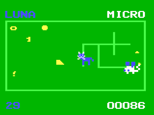 Yet another unique game is The Mousing Cat – one of the few games for the Odyssey² that is actually fun. 😐 You can play the game with either a friend or the computer. Each of you takes turns being the cat or the mouse. When you are the mouse, you have to eat as much cheese on the screen as you can before the cat can trap you. When you are the cat, you have to trap the mouse by holding the controller button to create walls around it. You get score from eating cheese as the mouse, and as the cat you are trying to minimize the amount of cheese your opponent can eat before you manage to trap them. The game is for the most part adorable, though it has a rather nasty animation of the mouse getting eaten at the end of each round. 🫣